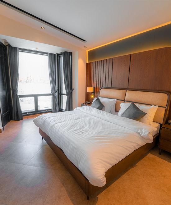 The magical vibes of our Executive Huts offer an experience that will make you feel like royalty. Its glorious look will give you the luxury and comfort you deserve and will do so in style. Built with exceptional quality materials, it comprises one bedroom and one TV lounge where you can sit and entertain yourselves with your favourite TV shows and movies from our selection of exclusive content, with access to Netflix, and soak in the ambience of the majestic river and mountain view from the windows.